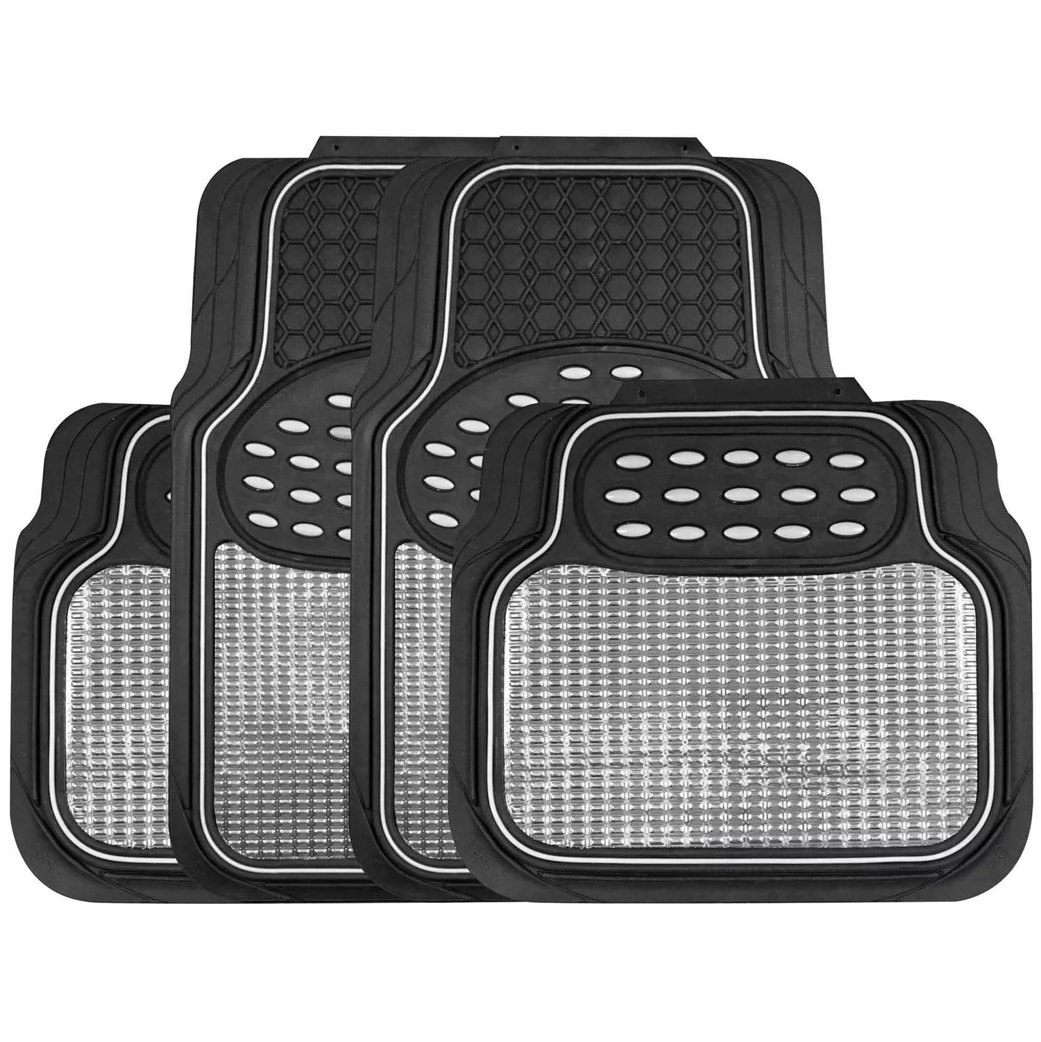 Streetwize 4 Piece Heavy Duty Metallic Style Mat Set – Black & Chrome